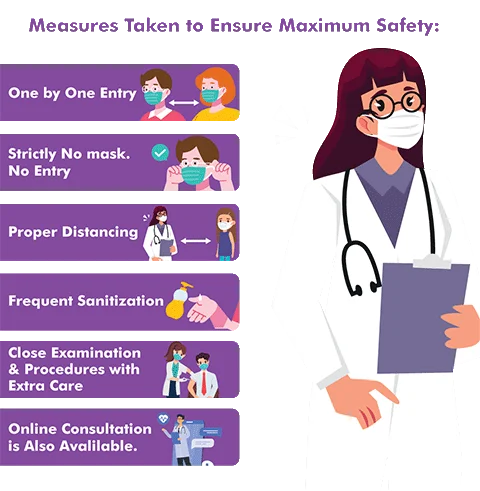 One by one entry – Maximum two patients as allowed inside clinic premises the time (one in doctor chamber and one in waiting hall).